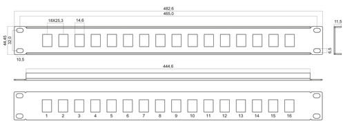 ALPHA ELETTRONICA - Pannello Patch 19" 1U per Keystone - Nero - 16 porte 96-806/1