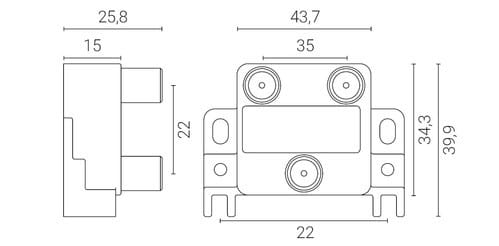ALPHA ELETTRONICA - Partitore SAT 5-2400MHz - 2 uscite - connettori F verticali 58-9/2