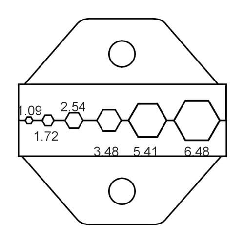 Dimensione sedi: 6,48 - 5,41 - 3,48 - 2,54 - 1,72 - 1,09mm