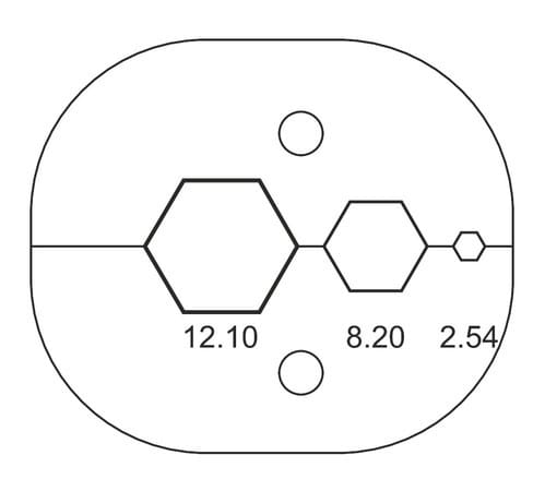 Dimensione sedi: 12,10 - 8,20 - 2,54mm