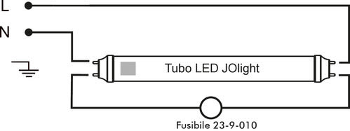 La plafoniera può essere utilizzata solo ed esclusivamente con tubi led JOlight aventi alimentazione 230Vac da un singolo lato.