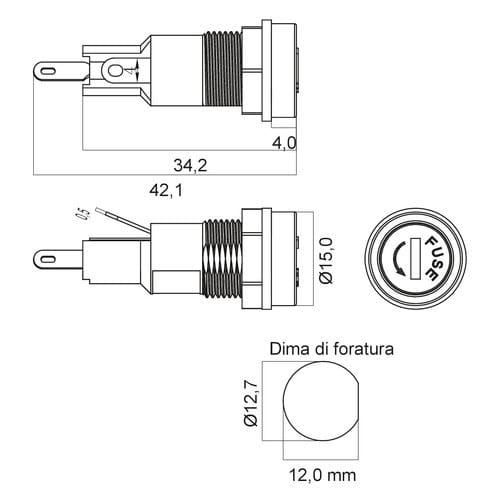 ALPHA ELETTRONICA - Portafusibile da pannello per fusibili 5x20mm PF251