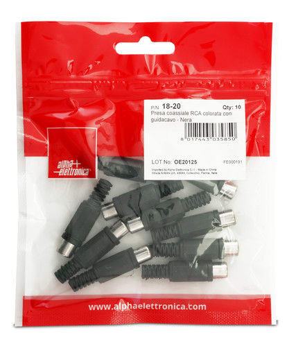 ALPHA ELETTRONICA - Presa coassiale RCA colorata con guidacavo - Nera 18-20