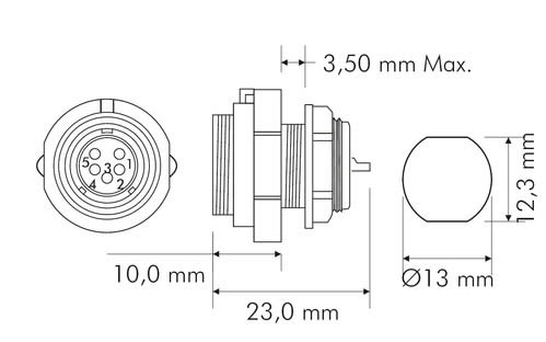 ALPHA ELETTRONICA - Presa da pannello SP13 cinque poli 44-52