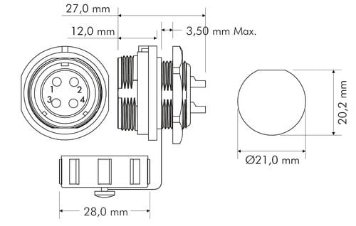 ALPHA ELETTRONICA - Presa da pannello SP21 quattro poli 44-64
