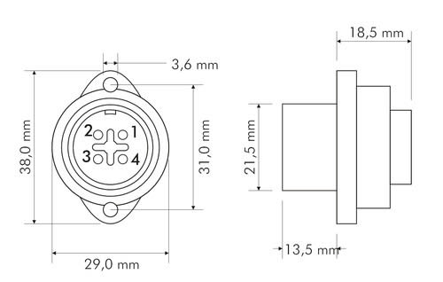 ALPHA ELETTRONICA - Presa da pannello WA22 4 poli 44-88