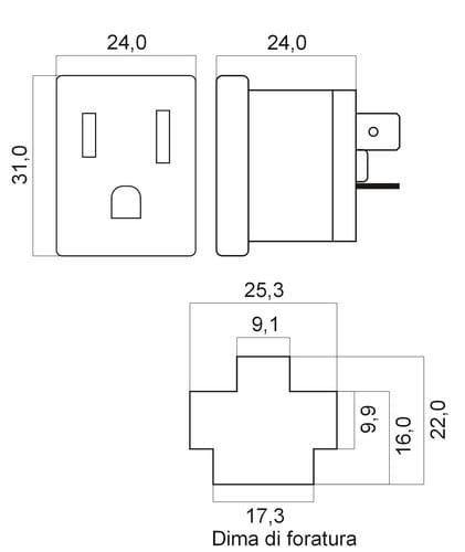 ALPHA ELETTRONICA - Presa di alimentazione AC da pannello ad innesto - America 23-14