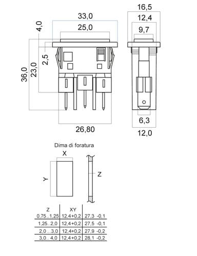 Dima di foratura: 27x12mm