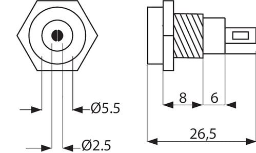 ALPHA ELETTRONICA - Presa di alimentazione DC da pannello - ø5,5-2,5mm 34-9