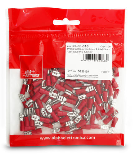 ALPHA ELETTRONICA - Presa faston preisolata - 4,75x0,5mm - per cavo 0,5-1,5mm² 22-30-016