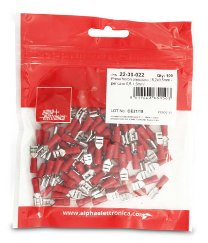 ALPHA ELETTRONICA - Presa faston preisolata - 5,2x0,5mm - per cavo 0,5-1,5mm² 22-30-022