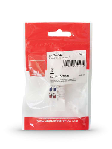 ALPHA ELETTRONICA - Presa Keystone 8P8C RJ45 non schermata - Cat.6 - UTP - Connessione 110 IDC