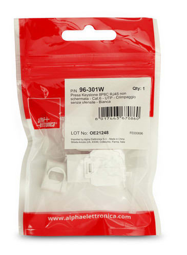 ALPHA ELETTRONICA - Presa Keystone 8P8C RJ45 non schermata - Cat.6 - UTP - Crimpaggio senza utensile - Bianca 96-301W