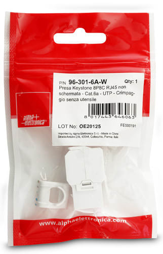 ALPHA ELETTRONICA - Presa Keystone 8P8C RJ45 non schermata - Cat.6a - UTP - Crimpaggio senza utensile - Bianca