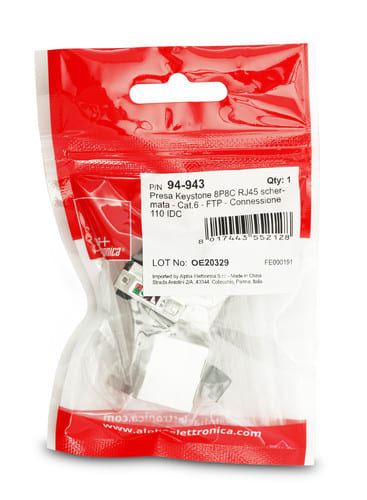 ALPHA ELETTRONICA - Presa Keystone 8P8C RJ45 schermata - Cat.6 - FTP - Connessione 110 IDC 94-943