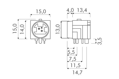 ALPHA ELETTRONICA - Presa Mini-DIN per circuito stampato - 3 poli 44-22