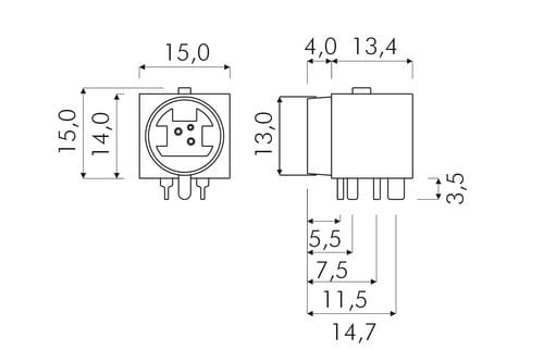 ALPHA ELETTRONICA - Presa Mini-DIN per circuito stampato - 3 poli 44-24