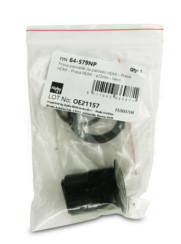 ALPHA ELETTRONICA - Presa passante da pannello HDMI - Presa HDMI - Presa HDMI - ø22mm - Nero 64-579NP