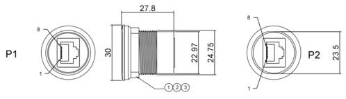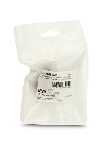 ALPHA ELETTRONICA - Presa passante da pannello RJ45 Cat.5e - Presa RJ45 - Presa RJ45 - ø25mm - Nero 94-952NP