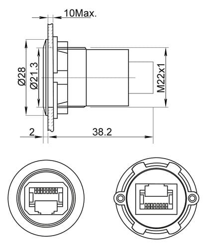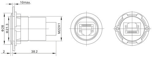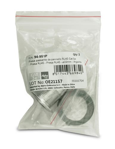 ALPHA ELETTRONICA - Presa passante da pannello RJ45 Cat.5e - Presa RJ45 - Presa RJ45 - ø22mm - Argento 94-951P