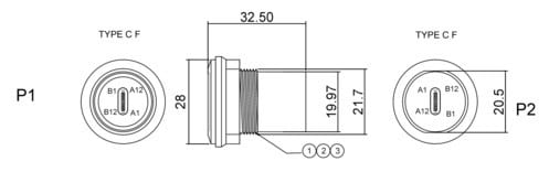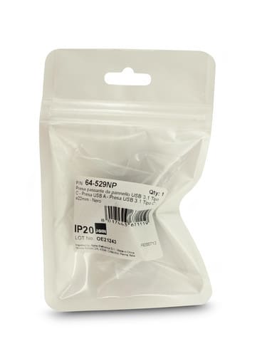 ALPHA ELETTRONICA - Presa passante da pannello USB 3.1 Tipo C - Presa USB 3.1 Tipo C - ø22mm - Nero