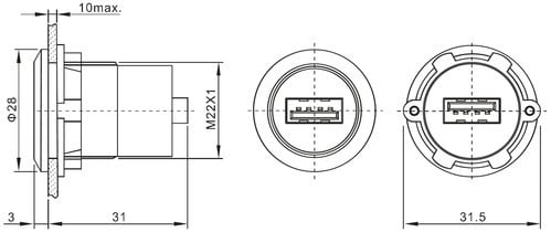 Tipo Connettore A: Presa USB tipo A ø31.5mm