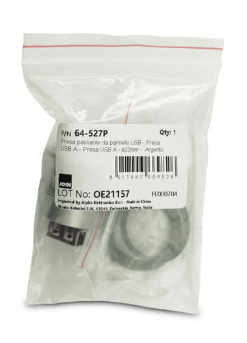ALPHA ELETTRONICA - Presa passante da pannello USB - Presa USB A - Presa USB A - ø22mm - Argento 64-527P