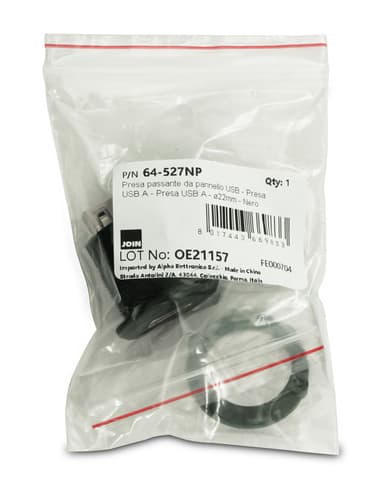 ALPHA ELETTRONICA - Presa passante da pannello USB - Presa USB A - Presa USB A - ø22mm - Nero 64-527NP