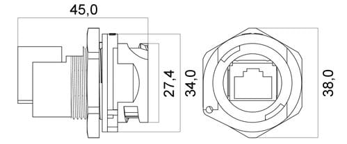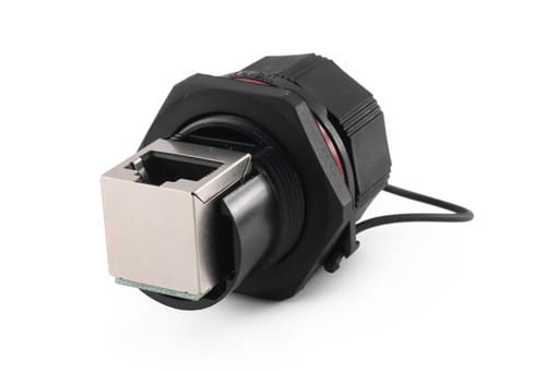 ALPHA ELETTRONICA - Presa RJ45 Cat.5e - schermata a pannello IP67 con tappo - ad angolo 96-123/2
