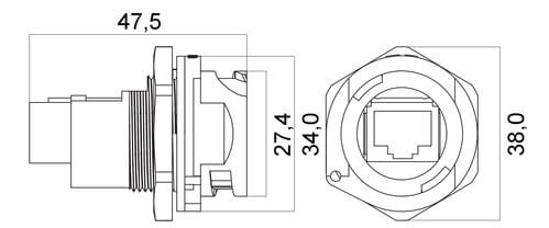ALPHA ELETTRONICA - Presa RJ45 schermata a pannello IP67 diritta con tappo 96-123/1