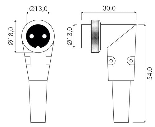 ALPHA ELETTRONICA - Presa schermata a norma DIN 90° - 2 poli 40-01