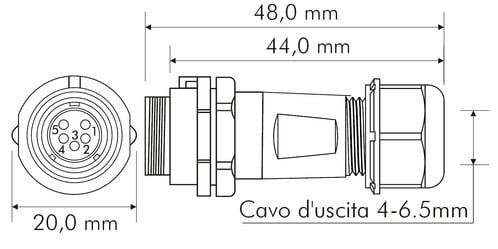 ALPHA ELETTRONICA - Presa volante SP13 cinque poli 44-46