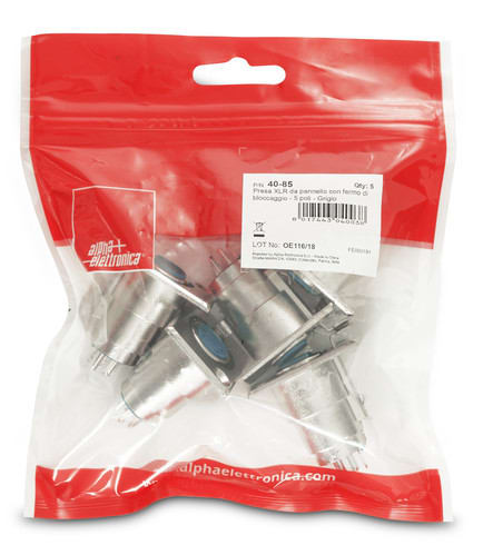 ALPHA ELETTRONICA - Presa XLR da pannello con fermo di bloccaggio - 5 poli - Grigio 40-85