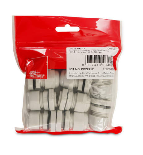 ALPHA ELETTRONICA - Pressacavi in nylon IP65 - filettatura PG11 - per cavo ø5 - 10mm 514-11