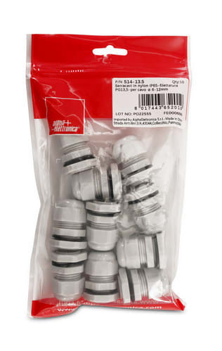 ALPHA ELETTRONICA - Pressacavi in nylon IP65 - filettatura PG13,5 - per cavo ø6 - 12mm 514-13.5