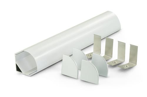 ALPHA ELETTRONICA - Profilo in alluminio anodizzato argento ad angolo con copertura in PC opaca tonda - 2m - Accessori inclusi JO381/009-12K