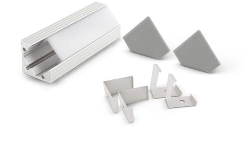ALPHA ELETTRONICA - Profilo in alluminio anodizzato argento ad angolo con copertura in PC trasparente piana - 2m - Accessori inclusi JO380/152-22K