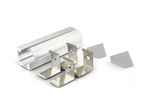 ALPHA ELETTRONICA - Profilo in alluminio anodizzato argento ad angolo con copertura in PMMA trasparente tonda - Diffusore lenticolare - 2m - Accessori inclusi JO380/152-52K