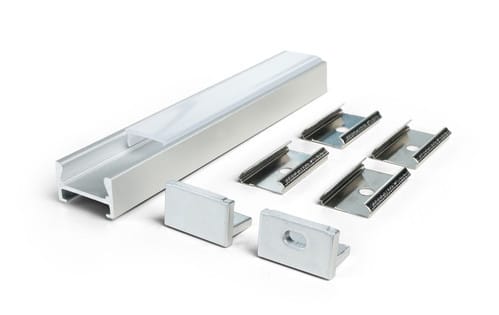ALPHA ELETTRONICA - Profilo in alluminio anodizzato argento con copertura in PC opaca piana - 2m - Accessori inclusi JO381/008-12KI