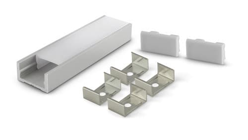 ALPHA ELETTRONICA - Profilo in alluminio anodizzato argento con copertura in PMMA opaca piana - 2m - Accessori inclusi JO380/084-32K