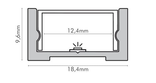 II profilo illustrato è un componente. Il suo corretto funzionamento con nastri led o moduli led dipende da importanti requisiti di installazione e dimensionamento. La potenza dissipabile è stata calcolata considerando una temperatura ambiente non superiore a 35°C in aria. Condizioni di installazione differenti devono essere opportunamente verificate da personale tecnico. Utilizzare la copertura solo con nastri led IP20.
