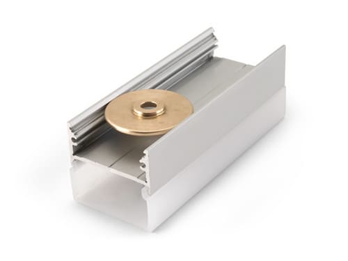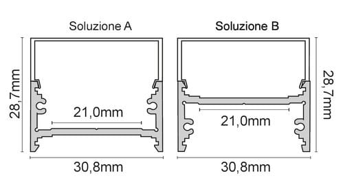 Il profilo illustrato è un componente. Il suo corretto funzionamento con nastri led o moduli led dipende da importanti requisiti di installazione e dimensionamento. La potenza dissipabile è stata calcolata considerando una temperatura ambiente non superiore a 35°C in aria. Condizioni di installazione differenti devono essere opportunamente verificate da personale tecnico. Utilizzare la copertura solo con nastri led IP20.