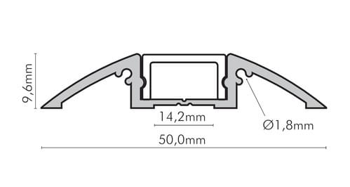 Il profilo illustrato è un componente. Il suo corretto funzionamento con nastri led o moduli led dipende da importanti requisiti di installazione e dimensionamento. La potenza dissipabile è stata calcolata considerando una temperatura ambiente non superiore a 35°C in aria. Condizioni di installazione differenti devono essere opportunamente verificate da personale tecnico. Utilizzare la copertura solo con nastri led IP20.