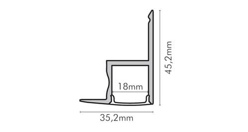 Il profilo illustrato è un componente. Il suo corretto funzionamento con nastri led o moduli led dipende da importanti requisiti di installazione e dimensionamento. La potenza dissipabile è stata calcolata considerando una temperatura ambiente non superiore a 35°C in aria. Condizioni di installazione differenti devono essere opportunamente verificate da personale tecnico. Utilizzare la copertura solo con nastri led IP20.