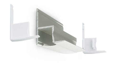 ALPHA ELETTRONICA - Profilo in alluminio anodizzato argento da incasso con copertura in PC opaca piana - 2m - Accessori inclusi JO380/164-12K