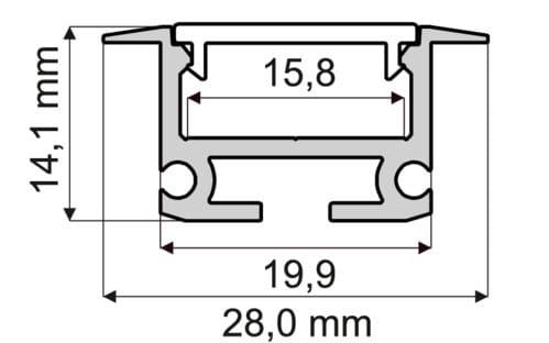 ALPHA ELETTRONICA - Profilo in alluminio anodizzato argento da incasso con copertura in PC opaca piana - 2m JO380/106-12P