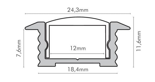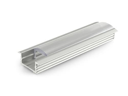 ALPHA ELETTRONICA - Profilo in alluminio anodizzato argento da incasso con copertura in PMMA trasparente tonda - Diffusore lenticolare - 2m JO380/102-52P