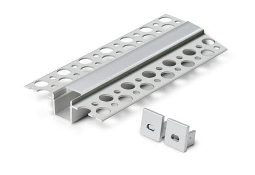 ALPHA ELETTRONICA - Profilo in alluminio anodizzato argento per cartongesso con copertura in PC opaca piana - 2m - Accessori inclusi JO381/505-12K2