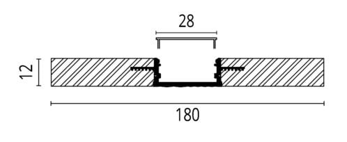 Profilo in alluminio a "T" con lastra in cartongesso per la realizzazione di tagli di luce in controsoffitto e pareti in cartongesso.
