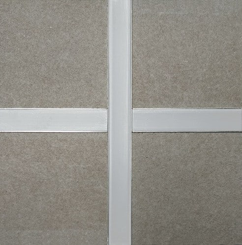 Profilo in alluminio a "X" con lastra in cartongesso per la realizzazione di tagli di luce in controsoffitto e pareti in cartongesso.